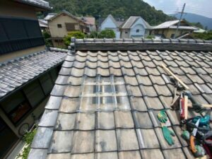 京都市右京区にて瓦屋根のガラス瓦設置工事の施工前写真