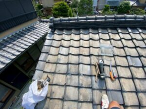 京都市右京区にて瓦屋根のガラス瓦設置工事