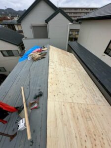 下地材まで劣化している屋根の場合は、本来であれば今回のように葺き替え工事を行うことが最適でございます。一方で、葺き替え工事は屋根全面の工事ですのでどうしてもコストがかかってしまいます。その為、部分的な補修をされる方もいらっしゃいますが、施工後の安全性やメンテナンスの事を考えるとやはり葺き替え工事が望ましいです。