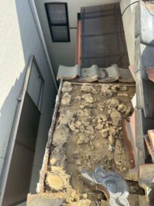 大変光栄なご連絡をいただき、現場に伺いました。屋根の状態としましては、屋根の下地材が見えてしまうほど瓦がずれていました。下地材が見えてしまっていましたので、当然雨水の影響で下地材は腐食し雨漏りが起こっていました。