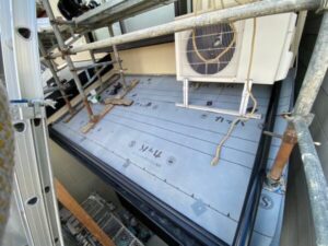 現場に伺うと、屋根には色褪せやひび割れなどが目立っていました。状態を見るからにあまりいい状態ではなかったという点と塗装では耐久性が長持ちしないという点からカバー工法をご提案いたしました。