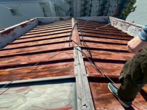 屋根から雨漏り…|京都市右京区にて屋根修理・雨漏り修理〈立平葺きへ葺き替え工事〉