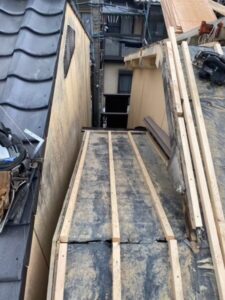 瓦を撤去し既存の下地材の上に垂木という棒状の木材を設置致します。
