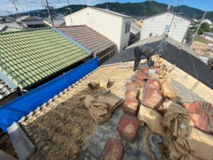 まず、重さの原因である瓦を撤去してまいります。