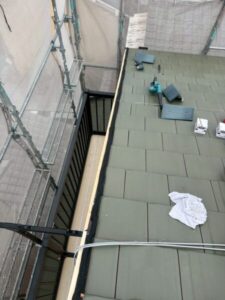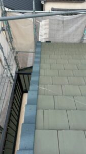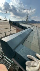 耐久性の観点からケラバの水切り部分に板金での仕上げではなく、軽量瓦を使用して施工いたします。