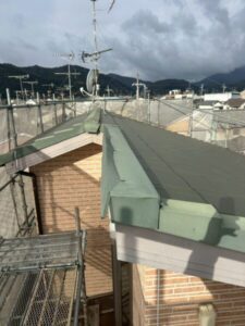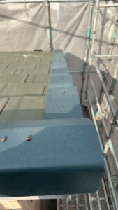 耐久性の観点からケラバの水切り部分に板金での仕上げではなく、軽量瓦を使用して施工いたします。