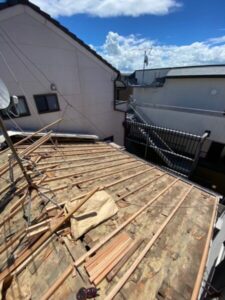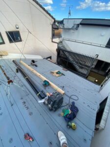 屋根材をきれいに撤去した後に新たな下地材を設置しますが、その前に下地材を固定するための垂木を設置致します。